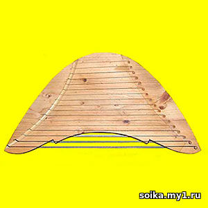 Щипковые. Представляют собой большую металлическую раму на ножках. Над декой натянуты струны, располагающиеся на двух уровнях: выше находятся струны Ля мажорной гаммы, ниже — остальные струны хроматического звукоряда. Диапазон 5 октав: от Ля контроктавы до Ля третьей октавы. Струны защипывают обеими руками: левая исполняет аккомпанемент, а правая — мелодию. Используются в оркестре русских народных инструментов.