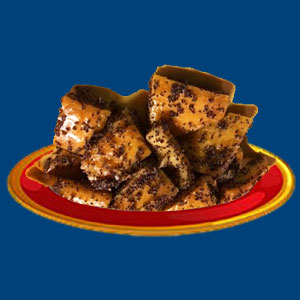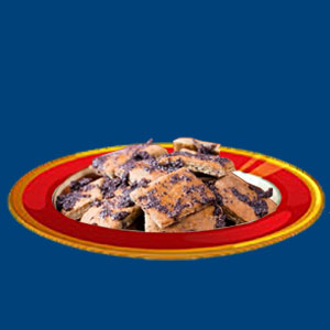 Затем режем еще горячую лепешку на произвольные кусочки средней величины, добавляем туда мак и заливаем горячим медом, который мы подогреваем, пока лепешка печется. Доводить мед до кипения не надо. Хорошо все перемешиваем. Вот наш десерт и готов!