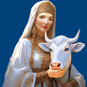 Кто такая Корова Земун? В «Велесовой книге» написано: «Мы - славяне, потомки Даждьбога, родившего нас через Корову Земун, и потому мы - кравенцы: скифы, анты, русы, борусины и сурожцы». Считается, что Корова Земун, так же как и Коза Седунь, сотворена Родом на заре времен. Она является матерью Велеса от Рода Вышня. Именно поэтому, славянский бог животных и плодородия Велес нередко изображается в виде быка или человека с бычьей головой и зовется Велесом-Коровичем. Изначально Священная Корова жила на острове Березань, но потом ей стало скучно, и она перебрались в Верхний Мир Богов. По разным данным, Млечный путь или даже вся наша галактика сотканы из молока Земун. В русских, украинских и белорусских преданиях рассказывается о том, что Земун охраняла стада в небе, периодически превращалась в простую корову и спускалась на землю, чтобы проверить, что из ее детей идет не той дорогой. Земун является воплощением матери. В мифологии она символизирует материнскую заботу, любовь и самоотверженность. Учит людей быть добрее к своим детям. Ничего удивительно нет, что особой популярностью она пользовалась у беременных женщин и матерей. Они приносили ей щедрые дары ипросили о крепком здоровье для каждого ребенка. В человеческом обличье Богиня Земун изображалась, как простая женщина невероятной красоты. Она была одета в простое, крестьянское платье. Те, кому якобы довелось встретить ее, рассказывали о светлом и прекрасном лице, на котором особенно выделялись красивые, но уставшие глаза. В образе Священной Коровы богиня могла менять свою расцветку подобно хамелеону, в зависимости от места своего появления. Так как создателем Священной Коровы Земун считается сам Род, она относится к Богам высшего пантеона. У славян Богиня почиталась, как мать, защитница и богиня плодородия. В отличие от Лады или Макоши, она оберегала от бед и напастей не только простых людей, но и богов, которых считала своими потомками. Небесная покровительница Земун пользовалась большим уважением среди воинов, которые верили, что она защищает от ранений и смерти всех храбрых бойцов, возвращая их матерям. Гулянья в честь Коровы Земун проходили два раза в год: 11 февраля, когда Богиня почиталась одновременно с ее сыном Велесом и 10 апреля. В эти дни древние славяне ели пустой хлеб и кашу на воде. Рассказывали сказки и легенды о похождениях Велеса-Коровича и его матери Небесной Коровы Земун.