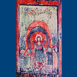 Пресвятую Деву Богородицу, стоящую на воздухе и молящуюся, сияющую солнечным светом и покрывающую людей Своим честным омофором. Видя то, святой Андрей сказал ученику своему, блаженному Епифанию: — Видишь ли, брат, Царицу и Госпожу всех, молящуюся о всем мире?