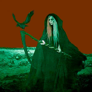 Параскева Пятница Христовым страстям причастница. В.И.Даль Месяцеслов. Чаще всего со смертью связывается образ старухи с костлявыми руками и ногами, с большими зубами В некоторых сказках, правда, старуха-Смерть рисуется, напротив, беззубой. В загадках смерть нередко загадывается через образ красивой девушки: «Красная девица, и всяк ее боится: и царь, и царица». В народных представлениях известен и образ смерти в виде скелета с косой. В повести об Анике-воине, широко распространенной в рукописях XVII–XVIII веков, Смерть изображается как «тощая, сухая, кости голые! и несет в руках серп, косу, грабли и заступ». Старость и костлявость Смерти соотносятся с представлениями об останках мертвого человека. Сравнение в народной традиции Смерти с покойником довершается изображением ее одежды. Как правило, старуху-Смерть представляли в саване или белом одеянии, которые являлись обычной погребальной одеждой. В мифологических рассказах нередко встречается также образ «женщины в белом», олицетворяющий собою смерть: Помимо одежды, связанной с потусторонним миром, показательны и другие атрибуты Смерти. Это заступ — лопата, которой выкапывают могилу, а также коса или серп — инструменты для срезания травы или зерновых культур. Приписывание Смерти орудий для уборки растений неслучайно, это связано с представлениями о ее мощи: если она «работает», то одним взмахом «скашивает» не одну жизнь. Однако в своем деле смерть может обойтись и без инструментария, о чем свидетельствует загадка о ней: «Зарежет без ножа, убьет без топора». В мифопоэтических текстах Смерть может олицетворяться не только в облике человека, но и в виде птицы или животного. В русских народных загадках очень часто она изображается птицей: Сидит птичка На поличке. Она хвалится, Выхваляется, Иногда это не просто птичка, а птица-хищник, признаваемая в народных представлениях царем птиц: «Летит орел через немецки города, берет орел ягоды зрелы и незрелы». Или в другой загадке: Висит котел, Над котлом орел, Под котлом цветы. Соотнесение образа птицы со смертью понятно: в мифологической картине мира птица осмыслялась как посредник между разными мирами, в частности между миром живых и миром мертвых. Это древнее представление обусловило традиционное восприятие птицы и как предвестника смерти: по народным поверьям, если птица залетит в дом или ударится в окно, то это предвещает смерть кого-либо из домочадцев. Согласно мифологическим рассказам, Смерть может показываться и в облике домашних животных — коровы, собаки. Вместе с тем в жанре загадки используется и образ Смерти-невидимки, которая тем не менее исправно делает свое дело: «Печь день и ночь печет, а невидимка дошлую ковригу выхватывает». Местопребывание смерти в народных представлениях связывается с потусторонним миром. Так, в сказке Смерть появляется из-под земли: Мужик косил сено. Вдруг коса обо что-то зацепилась и зазвенела. «Нашла коса на камень!» — сказал мужик. — «Да, похоже на то!» — проговорила кочка. Мужик смотрит: кочка подымается, закурилась — и стала из нее Смерть Образ смерти в народных представлениях зачастую сочетает в себе, с одной стороны, внешнюю немощь, а с другой — невероятную силу. В повести об Анике-воине Смерть говорит герою: «Сколько ни было на белом свете храбрых могучих богатырей — я всех одолела». Более того,