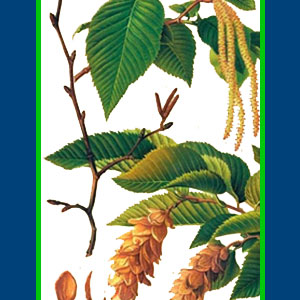 Хмелеграб обыкновенный — вид деревьев рода Хмелеграб семейства Берёзовые. Латинское видовое название carpinifolia происходит от латинских слов Cárpinus (граб) и fólium (лист), то есть переводится как «граболистный». В диком виде растёт на Кавказе и в Закавказье, в Европе, Средиземноморье и Малой Азии. Хмелеграб обыкновенный произрастает в ниже- и среднегорном поясах по ущельям и скалам до высоты 1200 метров над уровнем моря, преимущественно в широколиственных лесах, чисто хмелеграбовые насаждения встречаются редко. Предпочитает известковые почвы. Теплолюбив, хорошо переносит сухие почвы. Довольно теневынослив. Растёт медленно: в первый год достигает высоты 15 см, на третий год вырастает до 30—70 см. Предельной своей высоты достигает примерно к 40 годам, после чего лишь расширяется крона и утолщается ствол. Дерево высотой до 15—20 метров с густой шатровидной кроной, диаметр ствола достигает 30 см. Живёт до 100 лет. Корень в первый год жизни стержневой, в дальнейшем образует мощную, разветвлённую корневую систему. Кора тёмно-бурая, с глубокими продольными трещинами, отслаивается длинными свисающими полосами. Молодые ветви бурые, опушённые. Листья очерёдные, длиной 4—10 см, шириной 3—6 см, яйцевидные или яйцевидно-продолговатые, к вершине постепенно сужающиеся, с округлым или слабосердцевидным основанием, на опушённых черешках длиной до сантиметра. Цвет листовой пластинки светло-зелёный, снизу более светлый. Края двоякозубчатые с острыми зубчиками. Цветёт хмелеграб обыкновенный в апреле, одновременно с распусканием листьев. Мужские и женские цветки расположены на концах побегов в отдельных серёжках. Мужские серёжки цилиндрические, красновато-коричневые, 6—9 см длиной, женские шишковидные, намного короче. Плоды — яйцевидные, гладкие, сплюснутые с боков жетовато-бурые орешки длиной около 5 мм, завёрнутые в плёнчатые обёртки соломенного цвета с множеством продольных жилок и ломкими колючими волосками. Орешки собраны в соплодия длиной 5—8 см, диаметром до 4 см, похожие на шишечки хмеля. Созревают в августе—сентябре. Очень большое количество орешков (до 95 %) оказываются пустыми. Хмелеграб обыкновенный перспективен для использования в качестве паркового растения в южных областях России. Обладает ценной древесиной, она коричневато-бурого цвета, тяжёлая и плотная. | |