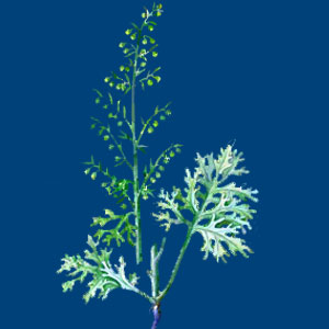 Полынь обыкновенная, чернобыльник, чернобыль (лат. Artemísia vulgáris) — вид многолетних травянистых растений рода Полынь (Artemisia) семейства Астровые (Asteraceae). Название «чернобыльник» происходит от черноватого стебля (былинки). Полынь обыкновенная распространена повсюду в Европе, в Передней и Центральной Азии, Северной Африке. Занесена и прижилась в Северной Америке. В России растёт по всей территории (на Дальнем Востоке только в бассейне Амура). Растет по заброшенным полям, пастбищам и пустошам, вдоль дорог, по берегам водоёмов. Рудеральное растение. Трудновыводимый сорняк. Многолетнее ветвистое растение, обычно конусообразной формы, высотой ,— м, реже , м. Стебель облиственённый по всей высоте, прямостоячий, буроватый с фиолетовым оттенком, в сечении угловато ребристый. Корневище многоглавое или коротко ползучее, в верхней части утолщённое. Листья мягкие дважды или трижды перисторассечённые с широколанцетными или линейно-ланцетными сегментами, зелёного цвета, длиной — см, сверху светло- или тёмно-зелёные, голые или слабо опушённые, снизу густоопушённые до белёсости и даже серебристости (нижняя часть листьев по окраске резко отличается от верхней — в этом отличие от близкой полыни горькой). Верхние листья простые и более мелкие. Конечные сегменты листьев ,— мм шириной. Хорошо заметны несколько пар ушек у основания черешка. Цветки мелкие, многочисленные, жёлтые или коричневатые. Корзинки прямостоячие, собраны в рыхлое метёлковидное соцветие. Ножки корзинок ,— мм длиной. Цветёт с июля по сентябрь. Плод — семянка. Плоды созревают в июле — октябре. В растении содержатся каротин, аскорбиновая кислота, сапонины, дубильные вещества, алкалоиды, эфирное масло. Трава содержит производные кумарина: кумарин, умбеллиферон, эскулетин, скополетин и другие, флавоноиды аянин, рутин, -O-глюкозид кверцетина. Полынь обыкновенная обладает сильным приятным пряным запахом. Для растения характерно низкое содержание кремния. Остальные минеральные элементы находятся в умеренном количестве. Свежие листья содержат , мг% каротина. Надзесная часть растения находит применение как пряная приправа к различным блюдам, особенно жирным (гуси, утки, свинина, свиное сало, жир), для чего в некоторых местностях растение культивируют. В небольших количествах листья используются охотниками как пряность при приготовлении дичи в полевых условиях. Полынь обыкновенная — лекарственное растение. В качестве лекарственного сырья используют траву (лат. Herba Artemisiae vulgaris) — собранные во время цветения и высушенные цветоносные облиственные верхушки, и корни, заготовленные осенью. Полынь улучшает аппетит и пищеварение, обладает тонизирующим, успокаивающим, кроветворным, ранозаживляющим, желчегонным и мягким слабительным действием; налаживает работу желудка и помогает при лихорадке. Отвар листьев полыни используется в качестве клизм для стимуляции печени, а также как глистогонное. Полынь используют при истощении, бессоннице, различных неврозах, простудных заболеваниях, малярии, гриппе и эпилепсии. В смеси с травой чабреца (тимьяна) полынь используют для лечения алкоголизма. Полынь женским растением, так как стимулирует матку, регулирует менструальный цикл, а также помогает при различных гинекологических недомоганиях и эпилепсии. Надземную часть и корни употребляют в народ