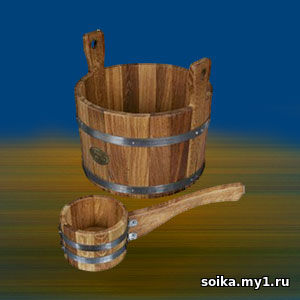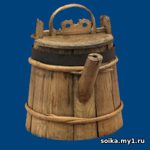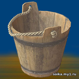 Ведро. Для изготовления ведра использовали еловые, сосновые и осиновые дощечки — клепки. Обручи, стягивавшие остов ведра в верхней и нижней части, мастерили из ивы, черемухи и сирени. Из них же делали дужку, которая вставлялась в «ушки» — продолжение клепок.