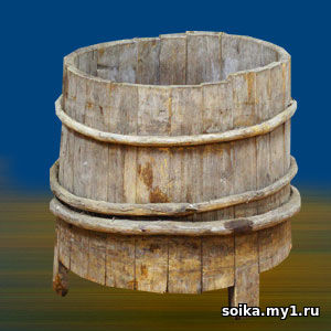 Бочка для солений. Дубовая кадушка сохраняет естественный аромат и вкус продуктов, изменяет их цвет. Кедровые кадушки хорошо переносят повышенную влажность, в них продукты наполняются фитонцидами кедра и сохраняют свежесть и вкусовые качества.