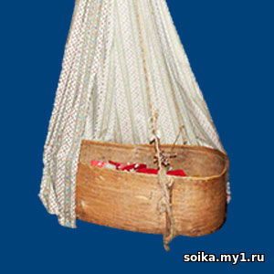 Колыбель в виде лубяного короба овальной или прямоугольной формы. Дно сплеталось из пеньковой веревки, лыка в виде сетки.