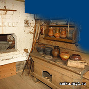 Пространство в нижней части русской печи для хранения посуды, закрытое дверцей.