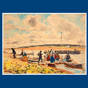 Перевозом называют переправу через водную преграду (реку). Это конкретное место на реке, где осуществляется переправа людей и грузов на разные берега реки. Вокруг таких переправ часто возникали поселения. Перевоз — название лодочной или паромной переправы через водную преграду (как правило, через реку), В XVII веке Волжский перевоз находился в ведении Воскресенского монастыря. По царской грамоте 1649 г. на его содержание ежегодно было велено выплачивать из таможенных доходов 23 рубля с полтиной. Перевозы делились на легкие и тяжелые. Первые – это перевозка людей, производившаяся на обычных лодках. Вторые – это паромы, помимо людей перевозившие различный гужевой транспорт, лошадей и скот.. Длительное время в качестве паромов использовалось интересное техническое средство – «самолет». Вот как он представлен в Топографическом описании Ярославской губернии 1803 г., в разделе, посвященном Угличу: «Через Волгу казенный перевоз на судне, именуемом самолетом. Разность его от обыкновенных паромов не столько в строении, сколько в ходу примечательна, ибо не употребляется ни весел, ни парусов, а только один канат, и то не с берега на берег, а на якоре, положенном посреди реки, выше перевоза саженях в двухстах. Канат поддерживается двумя большими лодками, называемыми третниками. Работников употребляется один, который управляет судном, а переход его от берега до берега производится ударением в нарочно сделанную под дном судна доску». Паром перемещался с помощью силы течения реки. Работник поворачивал под определенным углом доску-лопасть, задавая направление движения, и судно на длинном канате описывало дугу от одного берега к другому. Кем обслуживались и содержались переправы? Рассмотрим несколько примеров. В газете «Ярославские губернские ведомости» в 1846 г. публиковались объявления такого содержания: «Угличская Городская Дума приглашает желающих взять в содержание с 1847 по 1850 год в городе Угличе чрез реку Волгу тяжелой и легкой перевозы с рыбною ловлею, платьемойнями и ледокольнею; для чего в Думе назначен торг 16-го числа будущаго Ноября месяца, с положенною чрез три дня переторжкою; желающие торговаться имеют представить в Думу благонадежные залоги или поручительства». В апреле 1847 г. крестьянин Мышкинского уезда, Гавриловской волости, села Прилук Иван Семенов Тариборин взял с торгов «тяжелый и легкий перевоз чрез реку Волгу, Нефтинскаго общества, под деревней Пестово с правой стороны по течению реки на четыре года, то есть с 1847 по 1851 год, с платою каждогодно 32 рубля 50 копеек серебром». На это дело он заключил контракт с Входо-Иерусалимским волостным правлением. По контракту И.С. Тариборин должен был иметь: свои суда, «твердыя и безопасныя», – паром, два третника и шесть лодок. мостки для проезда конных – не менее 15 аршин (10,6 м). нанять рабочих людей, хорошего поведения и трезвых, не менее шести человек. При перевозе, как проезжающим, так и проходящим, не делать ни малейшей остановки. Излишнего взимания за перевоз, как с конных, так и с пеших, не производить, кроме назначенного по таксе, применяясь к городу Угличу. Таблички с расценками прибить на столбах, поставленных на берегу и на пароме. Плата за перевоз была следующей: «В полую весеннюю воду, по 1-е июня, брать серебром с пеших по 1 коп., с лошади в упряжке, в каретах, колясках, бричках, дрожках и