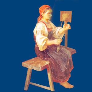 Нитку первоученку пряха должна сжечь и съесть. В.И.Даль Суеверия - приметы На Руси ручная прялка, появилась в глубокой древности и стала обязательным предметом крестьянского быта и народных ремесел, передаваемых из поколения в поколение. Прядение на Руси — исконно женский труд, который позволял создавать нитки из шерсти или волокон растительного происхождения, из которых впоследствии получались ткани. Прядением занимались с октября по март, то есть всё время, когда нет полевых работ. За прялку девочек сажали уже лет с пяти-семи - учили "тянуть ниточку". Им специально делали собственную маленькую детскую прялку, и это была не игрушка, а орудие труда. Большую прялку преподносили девушке, когда она достигала возраста невесты и должна была появиться на посиделках. С детского возраста юная хозяйка уже начинала готовить себе приданое, по которому сваты судили о мастерстве невесты. Только свадебных рушников она должна была заготовить не меньше пятидесяти. Кроме того, ей нужно было иметь к замужеству около двадцати комплектов одежды, ткани для хозяйственных нужд, постельные принадлежности, скатерти, холсты. Прядением в русских деревнях, как правило, занимались незамужние девушки с осени до Великого Поста, в то время, когда нет полевых работ.