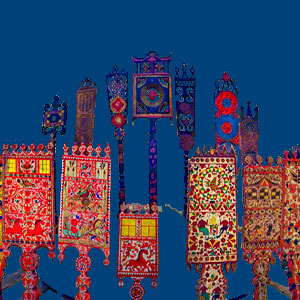 Кросна ставили под небольшим наклоном, чтобы между нитями оставался промежуток. Задние нити крепились к ещё одной перекладине. Если она лежала на кроснах, то оставалось естественное расстояние для пропускания утка между нитями, а если ткачиха её натягивала на себя, то образовывался искусственный промежуток, в который с помощью челнока протягивали уток; в этом случае передние нити отходили назад. Используя цветную нить и чередуя цвета и способы ткачества, мастерицы создавали красивые геометрические узоры.