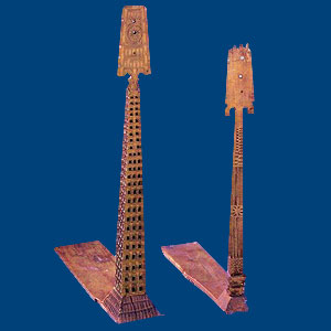 Основными мотивами орнамента в этой местности были круг и розетка сочной резьбы. Используя простейший инструмент - нож, мастер проводит желобки, графически тонкие штрихи косых линий, заостренным концом наносит треугольные выемки, которые мелкой россыпью окружают крупные розетки и покрывают свободную поверхность доски. нехитрыми приемами достигается разнообразие орнаментированных плоскостей. Узор тверских прялок второй половины XIX—начала XX в. из Старицкого и Ржевского уездов состоит из сплошных орнаментальных полей. Но и при обилии узорочья прялки сохраняют монументальный характер. В Ярославской губернии распространена самобытная, изящная по силуэту прялка-башенка, главный художественный элемент которой – ножка. Маленькая прямоугольная лопастка с оттянутыми нижними углами, часто гладкая, венчает ножку, сделанную то в виде пучка витых колонок с перехватами, то колонок, поставленных на резные кубы, то просто в виде граненого столбика, украшенного динамичными резными зигзагами. Пирамидальная головка донца служит устойчивым основанием башенки или колонки. Такие ножки имеют близкое сходство со стояками деревянных светцов XVI —XVII вв. Резьба на этих прялках мелкая, неглубокая. Геометрические фигуры очень просты по рисунку и как бы оплавлены—так мягко переходят выемки в плоскости. Видимо, эти прялки надо считать наиболее ранними среди ярославских башенок. Развитие столпообразной ножки в XVIII —XIX вв. вызвало новую ее разновидность. В XIX в. утвердился тип многоярусной башенки с рядами сквозных арок. Основание ее часто делалось ступенчатым и украшалось рядами мелких порезок, а лопастка покрывалась ювелирно тонкой резьбой. В этих прялках народные мастера создали художественный образ, проявив глубокое понимание архитектоники формы башни, сочетающей статичность массы с напряжением. Так родилась удивительная по красоте динамичная кривизна линий силуэта прялки. В Ярославской же губернии, на территории современных Любимского и Даниловского районов, граничащих с Костромской областью, по крайней мере в течение ста лет делали прялки с ромбической ажурной лопасткой и широкой плоской ножкой. Вся их поверхность покрывалась паутинкой тонкой контурной резьбы с небольшими вкраплениями в виде геометрических поясков. Прялки получили образное название «терема», «теремастые», наверное потому, что на их ножках часто вырезалось изображение башни со шпилем и часами. Плавными же очертаниями красиво изогнутой лопасти, всем сказочным обликом они напоминают плывущего лебедя. Из книги Тарановской Н.В., Мальцева Н.В. "Русские прялки - 1970" | |