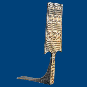 Вологодские прялки-копылы легко выделяются среди прочих своими внушительными размерами: они не только выше всех остальных типов русских прялок, но и имеют значительно более крупную, массивную, слегка расширенную книзу лопасть. Вырезались они всегда из монолитного куска дерева, чаше всего из ели или сосны.
