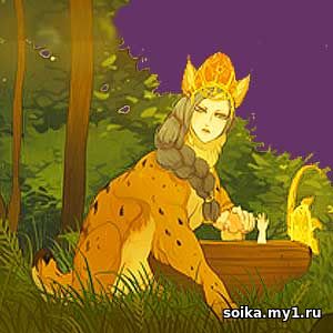 - Прогони ее из дому, чтоб я ее и в глаза не видела. Старик взял да и выдал свою дочку замуж. Живет она с мужем да радуется, и родился у них мальчик. А ведьма еще пуще злится, зависть ей покоя не дает; улучила она время, обратила свою падчерицу зверем Арысь-поле и выгнала в дремучий лес, а в падчерицыно платье нарядила свою родную дочь и подставила ее вместо стариковой дочери. Так все хитро сделала, что ни муж, ни люди — никто обмана не заметил. Только старая мамка одна и смекнула, а сказать боится. С того самого дня, как только ребенок проголодается, мамка понесет его к лесу и запоет: - Арысь — поле! Дитя кричит, дитя кричит, пить-есть хочет. Арысь — поле прибежит, сбросит свою шкурку под колоду, возьмет мальчика, накормит; после наденет опять шкурку и уйдет в лес. «Куда это мамка с ребенком ходит?» — думает отец. Стал за нею присматривать и увидал, как Арысь-поле прибежала, сбросила с себя шкурку, стала кормить малютку. Отец подкрался из-за кустов, схватил шкурку и спалил ее. - Ах, что-то дымом пахнет; никак, моя шкурка горит! — говорит Арысь-поле. - Нет, — отвечает мамка, — это, верно, дровосеки лес подожгли. Шкурка сгорела, Арысь — поле приняла прежний вид и рассказала все мужу. Тотчас собрались люди, схватили ведьму и прогнали ее вместе с ее дочерью. | |