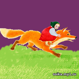 Собрались подружки идти в лес по ягоды и пришли её звать с собой. Долго старики не отпускали внучку. Потом согласились, только приказали ей не отставать от подруг. Ходят девушки по лесу, собирают ягоды. Деревце за деревце, кустик за кустик — Алёнушка и отстала от подруг. Они аукали её, аукали, а девочка не слыхала. Уже стало темно. Подружки ушли домой. Осталась Алёнушка одна. Влезла на дерево, стала громко плакать, приговаривать: — Ay! ау! Алёнушка! Ay! ау! голубушка! У дедушки, у бабушки была одна внучка Алёнушка. Её девушки в лес заманили; заманивши, покинули. Идёт медведь и спрашивает: — О чём ты, девочка, плачешь? — Как мне, батюшка-медведюшка, не плакать! Я одна у дедушки, у бабушки внучка Алёнушка. Меня девушки в лес заманили; заманивши, покинули. — Сойди, я тебя домой отнесу. — Нет, я тебя боюсь — ты меня съешь. Медведь и ушёл от неё. А Алёнушка опять принялась плакать, приговаривать: и — Ау! ау! Алёнушка! Ау! ау! голубушка! Идёт волк и спрашивает: — О чём ты, девочка, плачешь? — Как мне, волк, не плакать! Я одна у дедушки, у бабушки внучка Алёнушка. Меня девушки в лес заманили; заманивши, покинули. — Сойди, я тебя домой отнесу. — Нет, я тебя боюсь — ты меня съешь. Волк убежал, а девочка опять плачет, причитает: — Ау! ау! Алёнушка! Ау! ау! голубушка! Бежит мимо лиса, спрашивает: — О чём ты, девочка, плачешь? — Как мне, лисонька, не плакать! Я одна у дедушки, у бабушки внучка Алёнушка. Меня девушки в лес заманили; заманивши, покинули. — Сойди, я тебя домой отнесу. Девочка с дерева сошла, села на спину к лисе, и помчалась лиса с ней на деревню. Прибежала к дому и стала хвостом стучать в калитку. — Кто там? — Это я, лиса, принесла вам внучку Алёнушку. — Ах ты наша дорогая, войди в избу! Где нам тебя посадить? Чем тебя угостить? Принесли молока, яиц; не знают, чем лису и потчевать. Наелась лиса и убежала в лес. | |