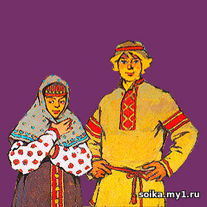 То еще не сказка, а присказка. Сказка вся впереди. Как горячих пирогов поедим да пива попьем, тут сказку поведем. В некотором царстве, в некотором государстве жила-была бедная молодица, пригожая вдовица с сыном. Парня звали Иваном, а по-уличному кликали Иван — вдовий сын. Годами Иван — вдовий сын был совсем мал, а ростом да дородством такой уродился, что все кругом диву давались. И был в том царстве купец скупой-прескупой. Первую жену заморил купец голодом; на другой женился — и та недолго пожила. Ходил купец опять вдовый, невесту приглядывал. Да никто за него замуж нейдет, все его обегают. Стал купец сватать вдовицу. — Чего тебе без мужа жить? Поди за меня. Подумала, подумала вдовица: "Худая про жениха слава катится, а идти надо. Чего станешь делать, коли жить нечем! Пойду. Каково самой горько ни приведется, а хоть сына подращу". Сыграли свадьбу. С первых дней купец невзлюбил пасынка: и встал парень не так, и пошел не так... Каждый кусочек считает, сам думает: "Покуда вырастет да в работу сгодится, сколько на него добра изведешь! Этак совсем разорюсь, легкое ли дело?". Мать убивается, работает за семерых: встает до свету, ложится за полночь, а мужу угодить не может. Что ни день, то пуще купец лютует. "Хорошо бы и вовсе, — думает, — от пасынка избавиться". Пришло время ехать на ярмарку в иной город. Купец и говорит: — Возьму с собой Ивашку — пусть к делу привыкает да и за товарами доглядит. Хоть какая ни есть, а все польза будет. А сам на уме держит: "Может, и совсем избавлюсь от него на чужой стороне". Жалко матери сына, а перечить не смеет. Поплакала, поплакала, снарядила Ивана в путь-дорогу. Вышла за околицу провожать. Махнул Иван шапкой на прощанье и уехал. Ехали долго ли, коротко ли, близко ли, далеко ли, заехали в чужой лес и остановились отдохнуть. Распрягли коней, пустили пастись, а купец стал товары проверять. Ходил около возов, считал и вдруг как зашумел, заругался: — Одного короба с пряниками не хватает! Не иначе как ты, Ивашка, съел! — Я к тому возу и близко не подходил! Пуще купец заругался: — Съел пряники, да еще отпирается, чтоб тебя леший, такого-сякого, взял! Только успел сказать, как в ту же минуту ельникберезник зашумел, затрещал, все кругом затемнело, и показался из лесной чащи старик, страшенный-престрашенный: голова как сенная копна, глазищи будто чашищи, в плечах косая сажень и сам вровень с лесом. — За то, что ты отдал мне, лешему, парня, получай свой короб! Кинул старик короб, подхватил Ивана — и сразу заухало, зашумело, свист да трескоток по лесу пошел. Купец от страху под телегу пал. А как все стихло, выглянул и видит: кони на поляну сбежались и дрожмя дрожат, гривы колом стоят, и короб с пряниками лежит. Купец помаленьку пришел в себя, выполз из-под телеги, огляделся — нигде нету пасынка. Усмехнулся. — Вот и ладно: сбыл с рук дармоеда, и товар весь в целости. Стал коней запрягать. А Иван — вдовий сын и оглянуться не успел, как очутился один со страшным стариком. Старик и говорит: — Не бойся. Был ты Иван вдовий сын, а теперь — мой слуга на веки веков. Станешь слушаться — буду тебя поить-кормить: пей, ешь вволю, чего душа просит, а за ослушание лютой смерти предам. — Мне бояться нечего — все равно хуже, чем у отчима, нигде не будет. Только вот матери жалко. Совсем она изведется без меня. Тут старик свистнул так громко, что листья с деревьев посыпались, цветы к з