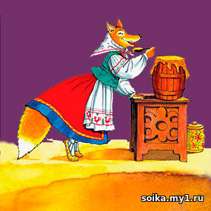 Лиса про то сведала. Как бы ей до мёду добраться? Прибежала лиса к медведю, села под окошечко: