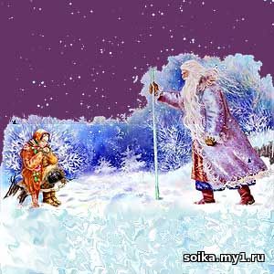 Ветер хоть пошумит, да затихнет, а старая баба расходится – не скоро уймется. Вот мачеха и придумала падчерицу со свету сжить. – Вези, вези ее, старик, – говорит мужу, – куда хочешь, чтобы мои глаза ее не видали! Вези ее в лес, на трескучий мороз. Старик затужил, заплакал, однако делать нечего, бабы не переспоришь. Запряг лошадь: – Садись, милая дочь, в сани. Повез бездомную в лес, свалил в сугроб под большую ель и уехал. Девушка сидит под елью, дрожит, озноб ее пробирает. Вдруг слышит – невдалеке Морозко по елкам потрескивает, с елки на елку поскакивает, пощелкивает. Очутился на той ели, под которой девица сидит, и сверху ее спрашивает: – Тепло ли тебе, девица? – Тепло, Морозушко, тепло, батюшка. Морозко стал ниже спускаться, сильнее потрескивает, пощелкивает: – Тепло ли тебе, девица? Тепло ли тебе, красная? Она чуть дух переводит: – Тепло, Морозушко, тепло, батюшка. Морозко еще ниже спустился, пуще затрещал, сильнее защелкал: – Ой, тепло ли тебе, девица? Тепло ли тебе, красная? Тепло ли тебе, лапушка? Девица окостеневать стала, чуть-чуть языком шевелит: – Ой, тепло, голубчик Морозушко! Тут Морозко сжалился над девицей, окутал ее теплыми шубами, отогрел пуховыми одеялами. А мачеха по ней уж поминки справляет, печет блины и кричит мужу: – Ступай, старый хрыч, вези свою дочь хоронить! Поехал старик в лес, доезжает до того места, – под большою елью сидит его дочь, веселая, румяная, в собольей шубе, вся в золоте, в серебре, и около – короб с богатыми подарками. Старик обрадовался, положил все добро в сани, посадил дочь, повез домой. А дома старуха печет блины, а собачка под столом: – Тяф, тяф! Старикову дочь в злате, в серебре везут, а старухину замуж не берут. Старуха бросит ей блин: – Не так тявкаешь! Говори: «Старухину дочь замуж берут, а стариковой дочери косточки везут…» Собака съест блин и опять: – Тяф, тяф! Старикову дочь в злате, в серебре везут, а старухину замуж не берут. Старуха блины ей кидала и била ее, собачка – все свое… Вдруг заскрипели ворота, отворилась дверь, в избу идет падчерица – в злате-серебре, так и сияет. А за ней несут короб высокий, тяжелый. Старуха глянулаи руки врозь… – Запрягай, старый хрыч, другую лошадь! Вези, вези мою дочь в лес да посади на то же место… Старик посадил старухину дочь в сани, повез ее в лес на то же место, вывалил в сугроб под высокой елью и уехал. Старухина дочь сидит, зубами стучит. А Морозко по лесу потрескивает, с елки на елку поскакивает, пощелкивает, на старухину дочь поглядывает: – Тепло ли тебе, девица? А она ему: – Ой, студено! Не скрипи, не трещи, Морозко… Морозко стал ниже спускаться, пуще потрескивать, пощелкивать: – Тепло ли тебе, девица? Тепло ли тебе, красная? – Ой, руки, ноги отмерзли! Уйди, Морозко… Еще ниже спустился Морозко, сильнее приударил, затрещал, защелкал: – Тепло ли тебе, девица? Тепло ли тебе, красная? – Ой, совсем застудил! Сгинь, пропади, проклятый Морозко! Рассердился Морозко да так хватил, что старухина дочь окостенела. Чуть свет старуха посылает мужа: – Запрягай скорее, старый хрыч, поезжай за дочерью, привези ее в злате-серебре… Старик уехал. А собачка под столом: – Тяф! Тяф! Старикову дочь женихи возьмут, а старухиной дочери в мешке косточки везут. Старуха кинула ей пирог: – Не так тявкаешь! Скажи: «Старухину дочь в злате-серебре везут…» А собачка – все свое: – Тяф, тяф! Старухиной дочери в мешке ко