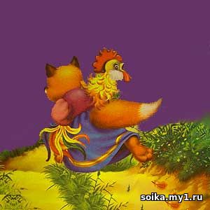 Лиса схватила его в когти, понесла в свою нору. Закричал петушок: —Несет меня лиса За темные леса, За быстрые реки, За высокие горы… Кот и дрозд, спасите меня!..