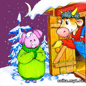 — Куда, баран, идешь? — спросил бык. — От зимы лета ищу, — говорит баран. — Пойдем со мною! Вот пошли вместе, попадается им навстречу свинья. — Куда, свинья, идешь? — спросил бык. — От зимы лета ищу, — отвечает свинья. — Иди с нами. Пошли втроем дальше, навстречу им гусь. — Куда, гусь, идешь? — спрашивает бык. — От зимы лета ищу, — отвечает гусь. — Ну, иди за нами! Вот гусь и пошел за ними. Идут, а навстречу им петух. — Куда, петух, идешь? — спросил бык. — От зимы лета ищу, — отвечает петух. — Иди за нами! Вот они идут путем-дорогою и разговаривают промеж себя: — Как же, братцы-товарищи! Время подходит холодное, где тепла искать? Бык и сказывает: — Ну, давайте избу строить, а то, чего доброго, и впрямь зимою замерзнем. Баран говорит: — У меня шуба тепла — вишь какая шерсть! Я и так перезимую. Свинья говорит: — А по мне хоть какие морозы — я не боюсь: зароюсь в землю и без избы прозимую. Гусь говорит: — А я сяду в середину ели, одно крыло постелю, а другим оденусь, меня никакой холод не возьмет; я и так прозимую. Петух говорит: — А разве у меня нет своих крыльев? И я прозимую! Бык видит — дело плохо, надо одному хлопотать. — Ну, — говорит, — вы как хотите, а я стану избу строить. Выстроил себе избушку и живет в ней. Вот пришла зима холодная, стали пробирать морозы; баран просится у быка: — Пусти, брат, погреться. — Нет, баран, у тебя шуба тепла; ты и так перезимуешь. Не пущу! — А коли не пустишь, то я разбегусь и вышибу из твоей избы бревно; тебе же будет холоднее. Бык думал-думал: «Дай пущу, а то, пожалуй, и меня заморозит», — и пустил барана. Вот свинья прозябла, пришла к быку: — Пусти, брат, погреться. — Нет, не пущу! Ты в землю зароешься и так перезимуешь. А не пустишь, так я рылом все столбы подрою да твою избу сворочу. Делать нечего, надо пустить. Пустил и свинью. Тут пришли к быку гусь и петух: — Пусти, брат, к себе погреться. — Нет, не пущу! У вас по два крыла: одно постелешь, другим оденешься; так и прозимуете! — А не пустишь, — говорит гусь, — так я весь мох из твоих стен повыщиплю, тебе же холоднее будет. — Не пустишь? — говорит петух. — Так я взлечу на чердак и всю землю с потолка сгребу, тебе же холоднее будет. Что делать быку? Пустил жить к себе и гуся и петуха. Вот живут они себе в избушке. Отогрелся в тепле петух и начал песенки распевать. Услыхала лиса, что петух песенки распевает, захотелось ей петушиным мясом полакомиться, да как достать его? Лиса поднялась на хитрости, отправилась к медведю да волку и сказала: — Ну, любезные куманьки! Я нашла для всех поживу: для тебя, медведь, — быка, для тебя, волк, — барана, а для себя — петуха. — Хорошо, кумушка! — говорят медведь и волк. — Мы твоих услуг никогда не забудем. Пойдем же приколем да поедим! Лиса привела их к избушке. Медведь говорит волку: — Иди ты вперед! А волк кричит: — Нет, ты посильнее меня, иди ты вперед! Ладно, пошел медведь; только что в двери — бык наклонил голову и припер его рогами к стенке. А баран разбежался, да как бацнет медведя в бок и сшиб его с ног. А свинья рвет и мечет в клочья. А гусь подлетел — глаза щиплет. А петух сидит на брусу и кричит: — Подайте сюда, подайте сюда! Волк с лисой услыхали крик да бежать! Вот медведь рвался, рвался, насилу вырвался, догнал волка и рассказывает: — Ну, что было мне! Этакого страху отродясь не видывал. Только что вошел я в избу, откуда ни возьмись, баба с ухватом на меня… Так к стене и