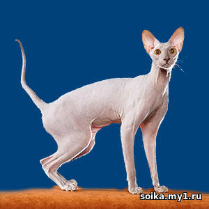 Петерболд – русский кот Петерболд, Петербургский Сфинкс — порода российских бесшёрстных кошек. Потомками донских сфинксов считаются петербургские сфинксы – петерболды, при их выведении проводились скрещивания с ориентальными кошками. Шерсть может отсутствовать совсем или присутствовать некоторые виды, среди них браш, велюр, флок. Вес: 3-5 кг Голова смотрится узкой, уши большие, их постав широкий Тело - тонкое, грациозное Ноги - удлиненные и изящные. Шерсть: лысая, короткошерстная Возраст: 13-15 лет Шерстка может либо вовсе отсутствовать, либо на теле находятся отдельные участки с пушком. Чаще всего они расположены на мордочке, ушах, конечностях. Кожа голых кошек ведет себя подобно человеческой: потеет, когда жарко и загорает летом под лучами солнца. У «резиновых» сфинксов она очень чувствительна к облучению, пересыханию, механическим повреждениям и нуждается в защите (которой может послужить смазывание детским маслом). В местах трения она приобретает усиленную пигментацию, а при отсутствии солнечного освещения теряет пигмент (солнечный загар зимой исчезает), сохраняя его лишь в мигрирующих «зимних пятнах» и родинках. При беременности и лактации пигментация усиливается. При отсутствии шерстного покрова окрас, словно татуировка, проявляется прямо на коже. Однако кожный пигмент дает лишь «тень от цвета», поэтому трудно провести четкие разграничения цветовых вариаций основных и осветленных окрасов. К примеру, красный тигровый окрас будет выглядеть на полностью раздевшемся взрослом животном так же, как кремовый пятнистый, т.е. визуально будет однотонно розоватым. Генетический окрас может определить лишь заводчик у котенка в первые дни жизни, пока еще сохраняется детская шерстка (если она вообще есть). У колорпоинтовых животных иногда лишь голубой цвет глаз взрослой кошки выдает её принадлежность к акромеланическим окрасам. На выставках проводится экспертиза без учета типа рисунка, а лишь на базе разделения по окрасам агути или не агути. Глаза сфинксов с рождения нормально развиты, они жмурятся и мигают, а слезные железы нормально справляются с увлажнением слизистых оболочек. Однако этот же фактор у подросших сфинксов приводит к повышенному слезоотделению, что особенно заметно в процессе питания: некоторые (особенно «резиновые» голорожденные) сфинксы плачут крокодильими слезами в момент кормления. Выделение так называемой кожной смазки (воскообразного красновато-коричневого липкого вещества) и скопление её вокруг когтей и в ушных раковинах (что вызывает порой панику у неопытных ветеринаров). На самом деле это не что иное как дополнительная защита организма от воздействия окружающей среды. Если сфинкс (особенно светлых окрасов) выглядит несколько чумазым, не следует подвергать его кожу тщательному промыванию водой с кошачьими шампунями, а лучше протереть его тело тряпочкой, смоченной в специальном масле, предназначенном для человеческих детей. Как правило, у взрослых животных, сохранивших остаточную оброслость, такие чрезмерные кожные выделения отсутствуют, и хозяин может ограничиться лишь периодической чисткой ушных раковин. Так же как на структуру шерсти, ген бесшерстности действует и на вибрисы: у гетерозиготных кошек они сохранены, но сильно извиты с рождения (что и помогает зачастую определить в первые мину