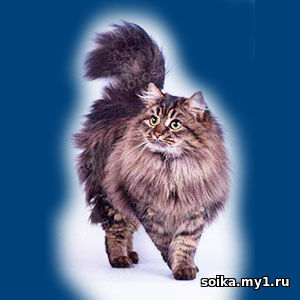 Сибирская кошка – русская порода длинношёрстных кошек. Сибирская кошка имеет длинную густую шерсть, не пропускающую влагу, крупные уши с кисточками, пушистый хвост. Окрас различный. Рост: до 33 см Впервые о кошках, похожих на сибирских, было упомянуто в публикациях в XVI в. Тогда их называли бухарскими. Их можно было встретить повсеместно в Российской империи. Нет точных данных, когда и как бухарские кошки появились в Сибири. В то время коренные жители Сибири вели преимущественно кочевой образ жизни и не держали кошек. Можно предположить, что переселенцы из западной части России при освоении сибирских земель, привозили с собой и своих кошек. Возможно, бухарские кошки попали в Сибирь с торговцами из азиатских стран, с которыми в то время велась активная торговля. Вполне возможно, что у ангорских, сибирских и персидских кошек были общие предки – переселенцы из Малой Азии. Сибирская кошка как порода стихийно сформировалась на территории приблизительно от Урала до Сибири, что способствовало появлению у сибирской кошки длинной плотной шерсти, оберегающая животное от холодов. При становлении породы определенную роль сыграли и дикие лесные коты. Своим названием сибирские кошки обязаны Сибири, которую в России считали великой из-за ее размеров. Эти крупные кошки получили название «сибирские» за свои могучие размеры. Среднего или большого размера, с отличными физическими способностями, их сила и мощь смягчаются сладким выражением мордочки. Тело оставляет общее впечатление округленности и сглаженности. Сибиряки взрослеют медленно, достигая зрелости к годам, и кошки несколько мельче котов. Поэтому надо внимательно подходить к определению соответствия стандарту породы кошек и молодых котов. При определении типа животного размер вторичен. Форма головы трапециевидная, с округленными контурами, от среднего до большого размера, хорошо гармонирующая с телом. Голова шире в верхней части черепа и слегка сужается к округленной мордочке. Размер ушей от средних до больших, округленные, слегка наклоненные вперед. В идеале расстояние между ушами должно быть равно ширине ушей. Шерсть на задней части ушей короткая и тонкая. Начиная с середины ушей, опушение становится длиннее и покрывает основание ушей. Желательны кисточки на кончиках ушей, как у рыси. Глаза большие, почти круглые, внешний угол слегка наклонен к основанию уха. Расстояние между ними больше, чем ширина глаза. Цвет глаз не связан с цветом шерсти. Подбородок хорошо округлен, но не выступающий, совпадающий с носом. Мордочка короткая, наполненная, закругленная. Слегка выгнутая, но переход между скулами и мордочкой плавный. Верх головы почти плоский, со слегка выгнутым носом, постоянного наклона. С небольшой впадиной, если смотреть в профиль. Шея округлая, крепкая, мускулистая. Тело средней длины, сильное, мускулистое, спина несколько выше плеч, с бочкообразным, твердым животом, создающим ощущение значительного веса, действительно приходящего с возрастом. Ноги средней длины. Задние несколько длиннее передних, с массивным костяком. Лапы большие и округлые, с обязательным опушением между пальцев. Хвост широкий в основании, слегка сужающийся к притупленному кончику. Костяк крепкий. Мускулатура солидная, мощная. Шея объёмная. Эти кошки с длиной шерстью от средней до длинной, с двойным под