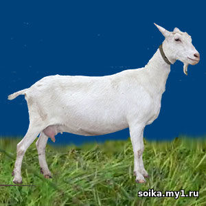 Зааненская порода коз, Белая зааненская — молочная порода (порода молочного направления) домашней козы, самая крупная и высокоудойная в мире, с короткой, белой шерстью, обычно без рогов. Племенная книга с 1890 года. Это одна из самых известных и уважаемых пород молочного направления. Выведена в середине XIX века в Швейцарии в долине реки Зане (Зааненская долина), кантон Берн. На территории России зааненки появились еще до революции, впервые завезена в 1905 году. Выход молока в 10-месячную лактацию составляет 600 — 2000 кг. Молоко содержит 4,5 % жира и 4,17 % молочного сахара. Хорошо переносит условия разведения, а также пастбища. Зааненки отличаются высокой плодовитостью, 180 — 250 козлят на 100 маток. В России с помощью зааненских коз вывели русскую белую породу. Белая зааненская, экстерьер: Конституция: крепкая суая; Цвет: белые, с короткой шерстью, состоящей главным образом из ости; Рогатость: преимущественно комолые; Зубы: ровный ряд; Вымя: хорошо развитое, не отвислое. Шея: животных длинная, нередко с так называемыми серёжками (кожными выростами). Конечности: крепкие, правильно поставленные. Живая масса маток 50 – 60 килограмм, козлов – 70 – 80 килограмм. Высота в холке козлов 90 — 100 см, коз75 — 85 см, вес до кг у козлов, и до 60 кг у коз. | |