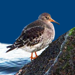 Морской песочник (лат. Calidris maritima) — вид птиц из семейства бекасовых, достаточно крупный кулик. Гнездится на арктических побережьях и в горной тундре Евразии и островах Северного Ледовитого океана. Вне сезона размножения его обычно можно встретить на берегу в полосе прибоя, где он небольшими стайками до 10—20 особей держится на влажных, густо покрытых бурыми водорослями валунах. Птица не боится человека и подпускает его на достаточно близкое расстояние. Вспугнутая на камнях стайка с криком поднимается в воздух, описывает невысоко над поверхностью воды полукруг и вновь возвращается на камни. Длина 19—22 см, размах крыльев 40—44 см, масса 55—110 г. Своим внешним видом этот вид заметно выделяется среди всех песочников, за исключением берингийского; однако ареалы этих двух родственных между собой птиц нигде не пересекаются. Ноги очень короткие желтоватые (летом) либо оранжевые (зимой). Клюв 4 – 5 см в длину, крылья в сложенном состоянии не заходят на вершину хвоста. В нижней части ног развиты толстые кожистые оторочки, которые увеличивают касательную поверхность и помогают удерживаться на скользкой покрытой водорослями поверхности. Половой диморфизм проявляется только в размерах: самки выглядят несколько крупнее самцов и обладают более длинным клювом; в окрасе оба пола различий не имеют. Расцветка оперения тёмная, в которой в отличие от многих других песочников чёрные и угольно-серые тона доминируют над рыжими. Весной и летом оперение верхней части тела черноватое или тёмно-бурое с бледно-охристыми, беловатыми и рыжими каёмками перьев на темени, затылке и лопатках. Бока головы и горло серовато-белые с тёмными продольными штрихами, над глазом развита светлая надбровная полоса. Грудь тёмно-бурая, брюхо в средней части белое, по бокам беловатое с тёмно-бурыми продольными пестринами. Первостепенные маховые буровато-чёрные, второстепенные бурые с белыми вершинными каёмками. Хвост слегка закруглённый, рулевые серовато-бурые, с узкими белыми каёмками в центральной части. Радужина тёмно-бурая. Осенью и зимой оперение становится ещё более тёмным и монотонным. Рыжие тона в нём заменяются угольно-серыми, светлая надбровная полоса исчезает, голова в целом приобретает однотонный буровато-серый окрас. На уздечке между глазом и клювом образуется хорошо выраженное белое пятнышко, жёлтые ноги и основание клюва приобретают горчичный или оранжевый оттенок. Шея и грудь буровато-серые. Брюхо на фоне тёмного верха выглядит контрастно-светлым и в сравнении с летним нарядом более тусклым — беловато-серым с размытыми мышино-серыми пятнами по бокам. Молодые птицы похожи на взрослых в летнем наряде, отличаясь от них бледно-охристыми и беловатыми, но не рыжими каёмками опахал в верхней части тела. Наиболее частая позывка — громкий, но вместе с тем мягкий односложный крик, передаваемый как «кют», «кеут» или «кевит», иногда в стайках переходящий в тихое двусложное щебетание. Сигнал тревоги — громкий и быстрый хохочущий крик «пехехехехехе…». В сезон размножения репертуар более разнообразный, состоящий из различных хриплых и вибрирующих звуков. В частности, в токующем полёте издаёт звонкую урчащую трель, похожую на трель чернозобика — «пруи..пруи..пруи…» или более жёсткое щебетание «кьюик..кьюик…уик..уик..уик…». Гнездовой ареал — арктические побережь