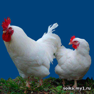 При скрещивании использовались разные породы: Русская белая, Первомайская, Загорская белая и Белый плимутрок.