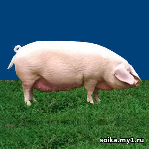 Масть исключительно белая, щетина средней длины, не грубая. Шире всего порода представлена в странах Балтии, Молдавии, Казахстане. В России поголовье эстонской беконной сосредоточено на северо-западе страны. Активная селекционная работа с породой в настоящее время в РФ не проводится. Эстонская беконная порода широко используется как отцовская (в Эстонии – также в качестве материнской). При промышленном скрещивании с рядом других пород проявляется значительный эффект гетерозиса по показателям мясной продуктивности. Свиньи внешне сходны с ландрасами, однако конституция эстонской породы крепче. Группа пород – мясная Направление продуктивности – беконное. Вес - самка 240 кг, хряк 330 кг. Конституция крепкая. Голова - средняя, профиль прямой или несколько вогнутый. Уши - крупные, свисающие, направленные вперед. Тело - удлиненное, веретеновидное. Спина - длинная, широкая, прямая. Лопатки - легкие. Грудь - широкая, глубокая. Окорока - хорошо выполненные, округлые. Ноги - крепкие, невысокие, постав широкий. Среднесуточный привес – 830-900 г Выход постного мяса с туши – 60% Скороспелость (100 кг) – 160 дней Плодовитость – 11-12 поросят за 1 опорос Категория – порода Скороспелость – 160 дней Плодовитость - 11-12 голов, молочность хорошая. Мясо отличного качества. Убойный выход до 80%, выход постного мяса до 60%. Конверсия кормов – 3,4-3,6 корм. ед. на 1 кг привеса. Свиньи адаптивны, отличаются резистентностью к широкому спектру заболеваний, нетребовательны к содержанию и кормлению. Отмечается, что представители породы хорошо усваивают объемистые корма. В южных регионах с мягким климатом возможен свободный выгул в теплый период года. Все пословицы со словом Свинья