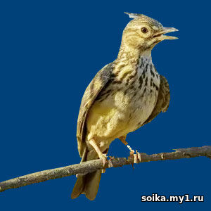 Жаворонок явится к теплу, зяблик – к стуже В.И.Даль Земледелие Хохлатый жаворонок длиной от 18 до 20 см и весом примерно от 30 до 55 г. Размах крыльев составляет 30-38 см. Полёт порхающий, волнистый. Он имеет незаметную окраску, сильный, согнутый клюв, средней длины лапы, большие, широкие крылья и хохол на голове. Окраска оперения тёмно-серого цвета с полосками, нижняя сторона белая, в области крыльев красноватая. Хвост имеет красновато-бурую внешнюю кромку. Самец и самка окрашены одинаково. Призывный крик хохлатого жаворонка звучит как «трюдритрие», он же составляет основной мотив пения. Поёт обычно сидя на земле, камне или заборе, иногда в полёте. Пение очень мелодично, птица имитирует даже голоса других птиц. Хохлатый жаворонок обитает на юге лесной зоны, в степях и полупустынях от запада и юго-запада Европы до Кореи и Жёлтого моря. На северо-востоке гнездового ареала хохлатый жаворонок — перелётная птица, в большинстве районов зимует в пределах области гнездования. Тем не менее, для отдельных особей доказаны очень далёкие миграции, вплоть до юго - восточных областей России Питание хохлатого жаворонка состоит из семян дикорастущих трав и других растений, зимой частично из мелких животных. Молодые птицы нуждаются в животной пище. К животной пище, которой питаются хохлатые жаворонки, относятся дождевые черви, мелкие жуки средней величины, мухи, маленькие бабочки, гусеницы и редко маленькие улитки, а также пауки. Обычно хохлатый жаворонок предпочитает открытые сухие луга, но встречается также и по окраинам полей и дорог, в промышленных районах, портах и городах. Идеальны сухие и тёплые территории с низкорослой растительностью, преимущественно на глинистых песчаных грунтах. При этом продолжающаяся распашка почв всё больше ограничивает подходящие места распространения. Самка строит хорошо замаскированное гнездо на земле, иногда также на склонах и каменных стенах. Между апрелем и июнем она откладывает дважды от 2 до 5 яиц, которые высиживаются от 11 до 14 дней. Птенцы покидают гнездо через — дней после вылупления. | |