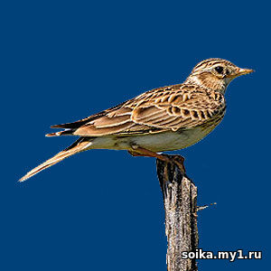 Жаворонок явится к теплу, зяблик – к стуже В.И.Даль Земледелие Полевой жаворонок размером немного крупнее воробья и имеет неяркую, но привлекательную окраску оперения. Длина тела 18-22 см, размах крыльев 34-37 см, масса 30-50 грамм. Спина серого цвета, иногда коричнево-жёлтая с пёстрыми вкраплениями, оперение живота белого цвета, грудь, довольно широкая для изящной птички, имеет коричневые пёстрые перья. Цевка светло-коричневая. Голова полевого жаворонка, аккуратная и более утончённая, чем голова воробья, украшена небольшим хохолком, хвост окаймляют белые перья. Над тёмными глазами — светлая бровь. Окраска полевого жаворонка покровительственная, она помогает ему маскироваться в траве и на земле. Самца можно отличить от самки по более крупным размерам и по песне, которая отсутствует у самки. Ареал полевого жаворонка весьма обширен, он включает в себя почти всю Европу и большую часть Азии, практически по всей территории России, а также горы Северной Африки. Также интродуцирован в Австралию, Северную Америку, где обитает на западе, и Новую Зеландию. Питаются растительной пищей в виде семян различных трав и злаковых растений. В рационе у них семена птичьей гречихи, пикульника, воробейника. Особое пристрастие питают эти птицы к семенам щетинника и другим диким видам проса. Когда созревают культурные злаковые, жаворонки с удовольствием совершают набеги на поля, засеянные овсом и пшеницей. Рожь и ячмень не пользуются у них такой популярностью, так как они более маслянисты, а полевые жаворонки предпочитают мучнистую пищу. Для того, чтобы твёрдые зёрна злаковых лучше переваривались в желудке, они вместе с семенами клюют небольшие камешки. Прилетая ранней весной, когда посевы только начинают прорастать, жаворонки пользуются и ими как пищей, пополняя организм витаминным кормом. Гнездо очень простое, строится оно в ямке на земле, среди травы. В качестве строительного материала полевой жаворонок использует стебли и корешки травы, внутри гнездо укладывается мягкой шерстью, собранной птицей, конским волосом и пухом. Гнездо маскируется очень тщательно, его трудно обнаружить. Высота гнезда около 50 мм, самка откладывает от 4 до 6 яиц, которые имеют желтоватый цвет и покрыты мелкими коричневыми крапинками. Всё время, пока птенцы не поднимаются на крыло, они прячутся среди травы и стеблей злаковых, где их практически невозможно заметить, оперение молодых полевых жаворонков сливается с окружающей растительностью, превращая птиц в невидимок. В июне самка может отложить вторую кладку, птенцы которой начинают самостоятельную жизнь уже в июле. И молодые, и старые особи отлетают на зимовку начиная с сентября. В середине октября уже практически не остаётся ни одной птицы. Зимовка проходит на юге Европы. Основной «столовой» для этих птиц становятся сжатые поля. Так и передвигаются эти небольшие, состоящие из 5—7 птиц, стайки, до тех пор, пока не наступает время отлёта на зимовку. Пение высоко над землёй делает полевого жаворонка весьма уязвимым. Сокол-чеглок, главный враг этих маленьких птичек, охотится только в полёте, и лучшей мишени, чем увлечённый пением самец жаворонка, трудно подыскать. Спасти маленького певца может только его знаменитое падение камнем на землю, но всё же множество самцов гибнет именно в разгар их знаменитой песни. Не только в небе, но